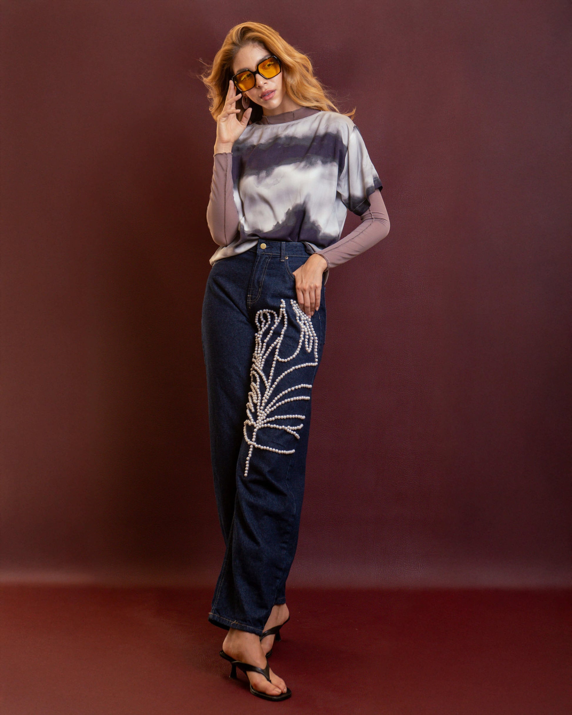 Camiseta pantanos, corte clásico amplio, textura en algodón 100% estampadoen acuarelas profundas.