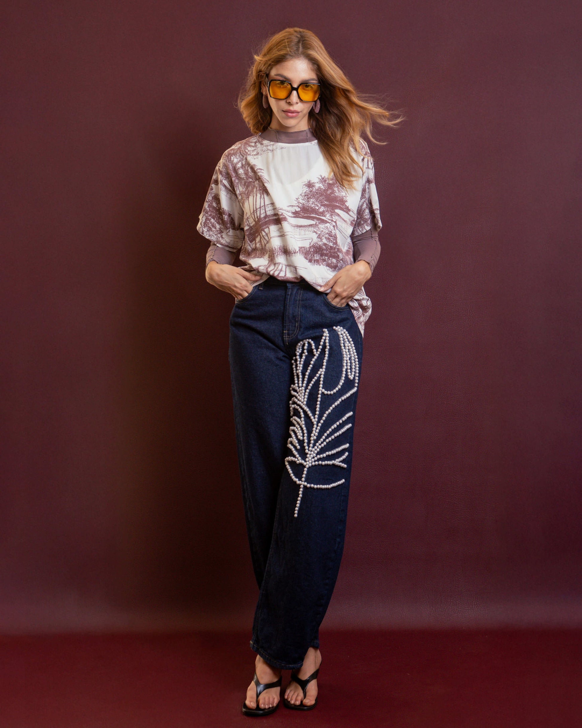 Camiseta Selva corte clásico amplio, textura en algodón 100% estampado terracota.